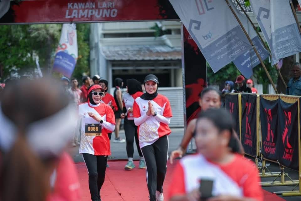 MEDIAPUBLIKA.com – Gubernur Lampung, Rahmat Mirzani Djausal bersama Ketua Palang Merah Indonesia (PMI) Provinsi Lampung, Purnama Wulan Sari Mirza, memeriahkan puncak peringatan HUT ke-80 PMI dengan mengikuti ajang olahraga lari “PMI Run 4 Humanity”.