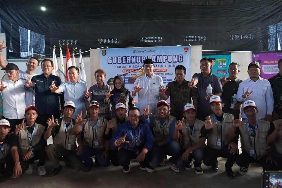 MEDIAPUBLIKA.com – Gubernur Lampung, Rahmat Mirzani Djausal menegaskan bahwa kemajuan bangsa Indonesia harus dimulai dari desa. Penegasan ini disampaikan Gubernur dalam kunjungan kerja di Desa Sindang Kurnia Agung, Kecamatan Rawa Jitu Utara, Kabupaten Mesuji, Sabtu (22/11/25).