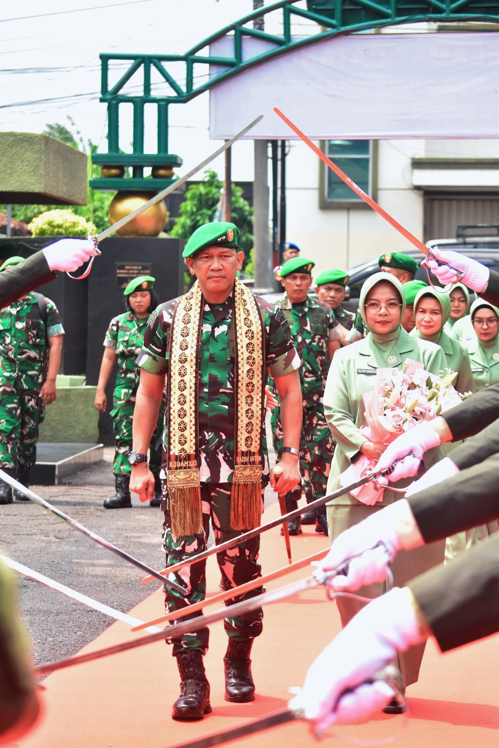 Kedatangan Pangdam XXI/Radin Inten Mayjen TNI Kristomei Sianturi turut didampingi Ketua Persit KCK Daerah XXI/RI, Ny. Asti Kristomei Sianturi. Mereka disambut hangat oleh Danrem 041/Garuda Emas dan Danrem 043/Garuda Hitam beserta istri masing-masing.