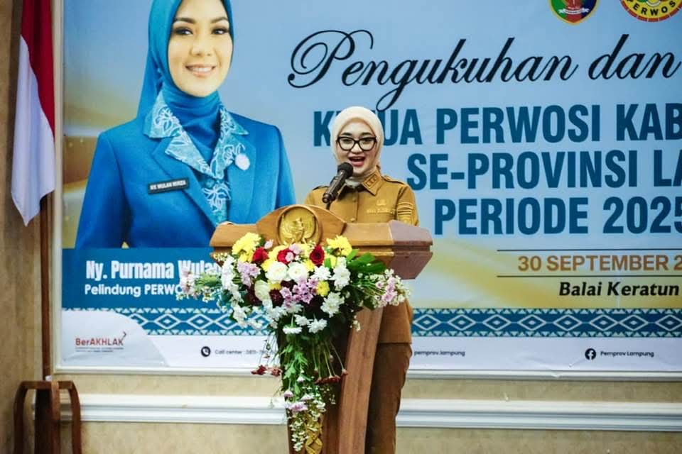 MEDIAPUBLIKA.com – Wakil Gubernur Lampung, Jihan Nurlela menghadiri Pengukuhan dan Pelantikan Pengurus Persatuan Wanita Olahraga Seluruh Indonesia (Perwosi) Tingkat Kabupaten/kota Se-Provinsi Lampung Masa Bakti 2025-2029. Acara berlangsung di Balai Keratun Lt. III, Selasa (30/9/25).