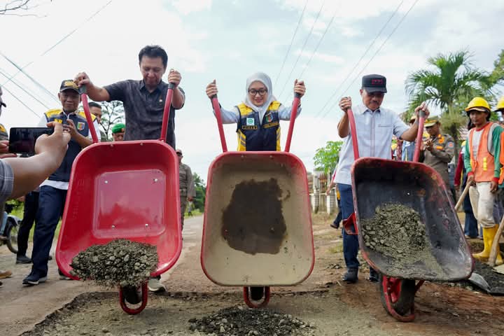 MEDIAPUBLIKA.com – Wakil Gubernur Lampung, Jihan Nurlela, melakukan groundbreaking pembangunan ruas jalan Gedong Tataan-Kedondong sekaligus melaksanakan Program Hasil Terbaik Cepat (PTHC), di Kabupaten Pesawaran, Sabtu (26/4/2025).