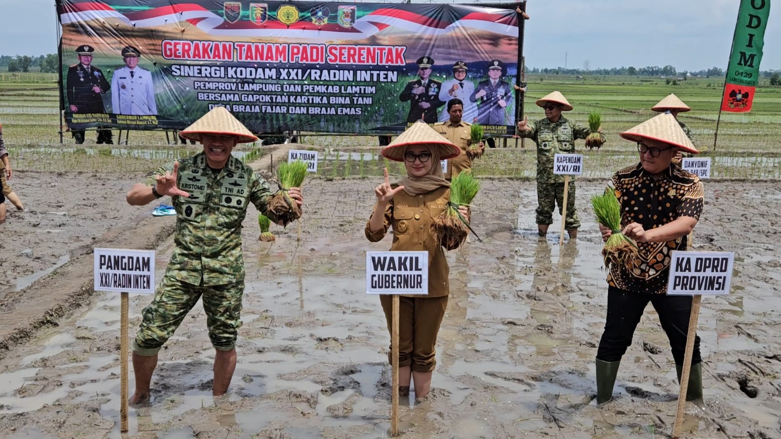 Sementara itu, Panglima Kodam XXI/Radin Inten, Mayor Jenderal TNI Kristomei Sianturi, menegaskan bahwa gerakan tanam padi serentak ini sejalan dengan kebijakan Presiden Prabowo Subianto yang menempatkan ketahanan pangan sebagai fondasi kedaulatan bangsa.